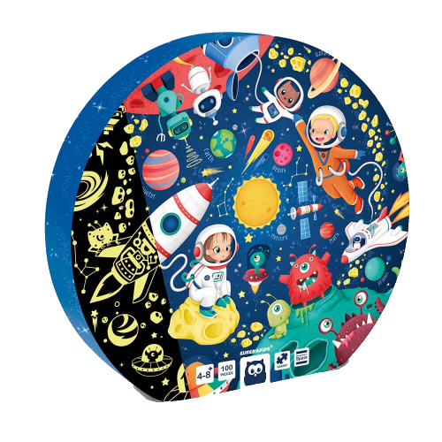 This giant 100-piece jigsaw puzzle will capture their attention from the very first moment and keep them entertained for hours. Its original and exclusive Eurekakids illustration combines clearly contrasting shapes with bright colours so that, if they put their minds to it, they can solve it on their own.