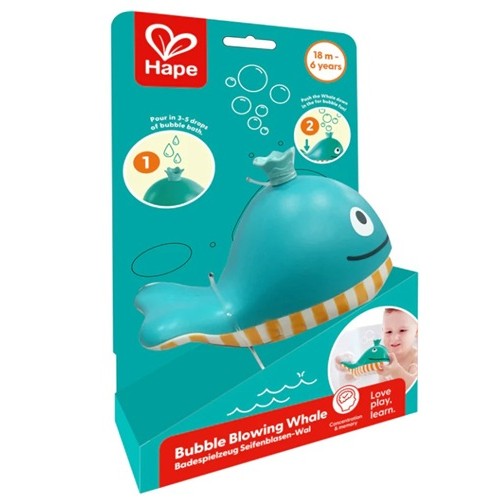 This jolly whale just loves blowing bubbles! Fill his spout with bubble bath or liquid soap and lower him into the bath. Makes bath time clean and fun!