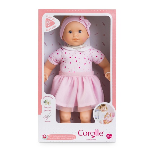 This first "soft toy doll" is perfect for stimulating your child's senses. She is a small 30 cm doll and has a beautiful face, arms and legs made of vinyl very soft to the touch that smells like vanilla.