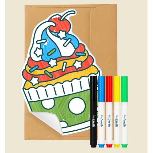2. Pop the colourful markers into the envelope so your recipient can use them to colour in the image and make it their own masterpiece.