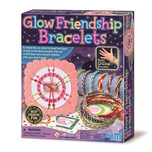 Brighten up craft time with the Glow-in-the-Dark Bracelet Kit – a fun and easy way to create luminous accessories that shine day and night. Using just one braiding wheel, kids can make two styles of bracelets — flat and round — perfect for sharing with friends or adding a glowing touch to any outfit. With materials to make 12 bracelets, this kit offers hours of creative entertainment.