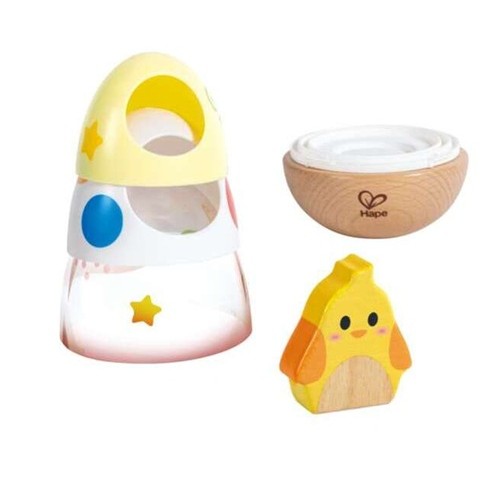 Stack colourful egg shells and watch them wobble and sway. Discover the hidden chick by twisting off egg layers.