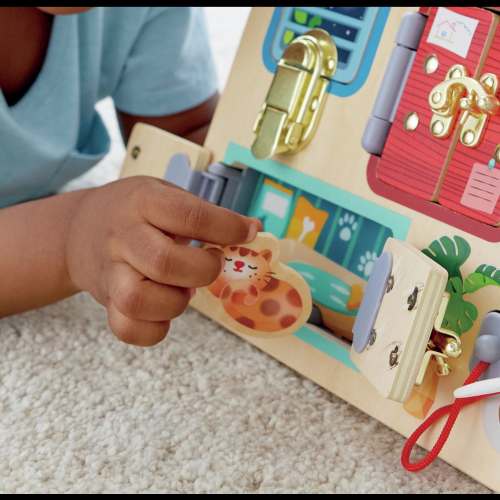 Featuring colourful doors, different types of locks and hidden compartments, this interactive board encourages curiosity as children open latches, reveal surprises and explore how each mechanism works.