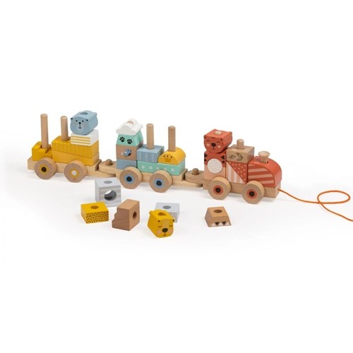 This pull-along wooden building block train is much more than just a toy with wheels. First they will have to fit the wooden blocks together to build the different modules, taking into account their colour and the animal they represent, an activity that will help them exercise their logical thinking and fine motor skills.