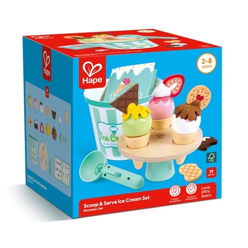 A delicious ice cream playset with realistic tools and unlimited combinations of ice cream flavours and toppings.