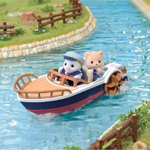 Includes accessories such as a mini boat for babies to ride, a swim ring, a cooler box, and apple juice.