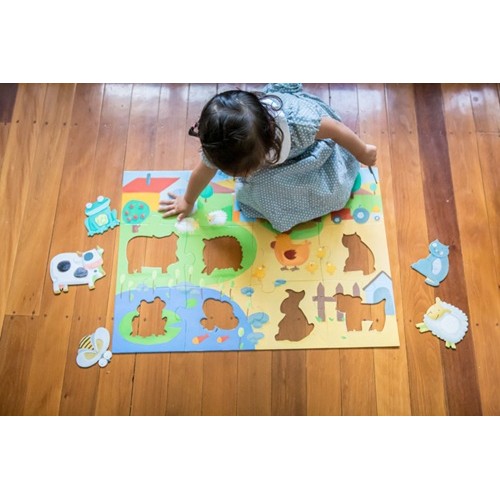 Each animal in this giant farm puzzle has a different textured piece to stimulate a child's tactile senses. Features eight extra farm animal pieces within the 12 piece puzzle, great for open-ended imaginative play .