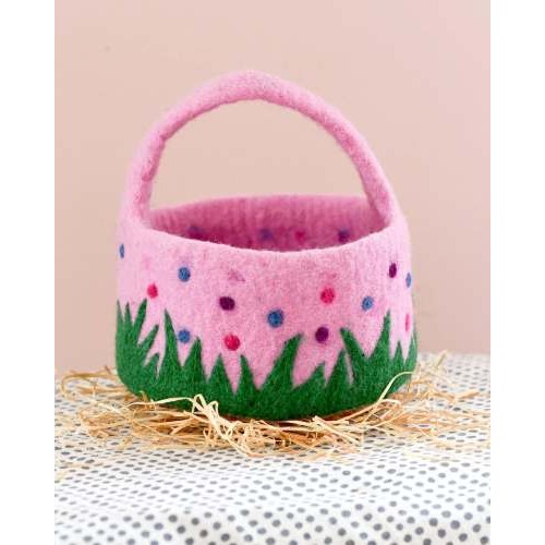 Make this Easter egg hunt extra special with our adorable felt pink basket adorned with colourful dots and wavy grass! Perfectly sized for little hands and brimming with charm, this basket is an essential accessory for your Easter festivities.