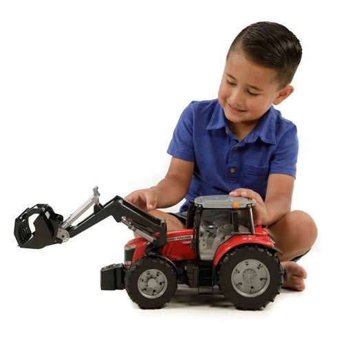 The off-road full floating axle improves agility while the detachable front weight and the front loader turn the tractor into a versatile all-rounder. The height-adjustable drawbar coupling can be used to add various BRUDER accessories and trailers, allowing the children to imitate any situation a tractor operator may encounter.