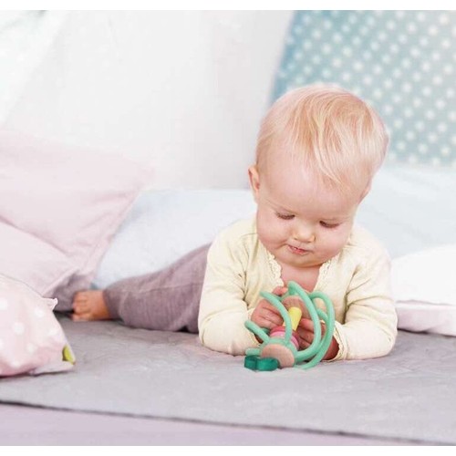 This cute apple grab toy is a great way to keep your little ones entertained as they explore and develop. Easy to attach to a crib, stroller, almost anywhere you like. Your little ones can reach through the bars to slide the softly rattling rings along or just grab and play with the fun twisty bars which are made of silicone and safe to chew! Great for encouraging tactile development and hand-eye coordination.